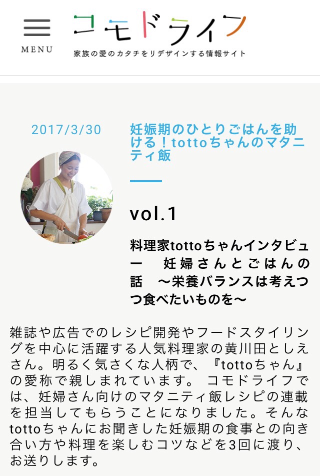 こちらのサイトではマタニティごはんのレシピの連載も始まります。