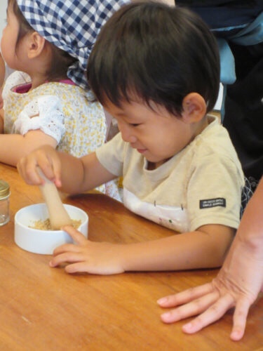 胡麻をゴリゴリ、