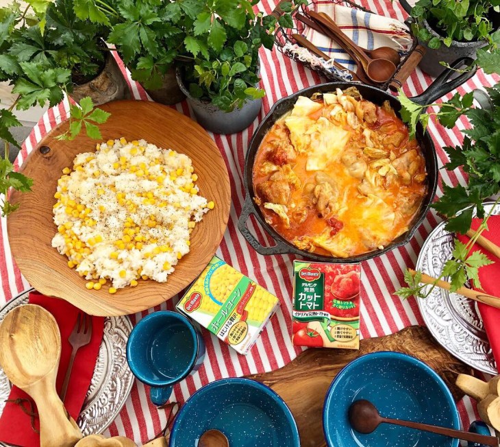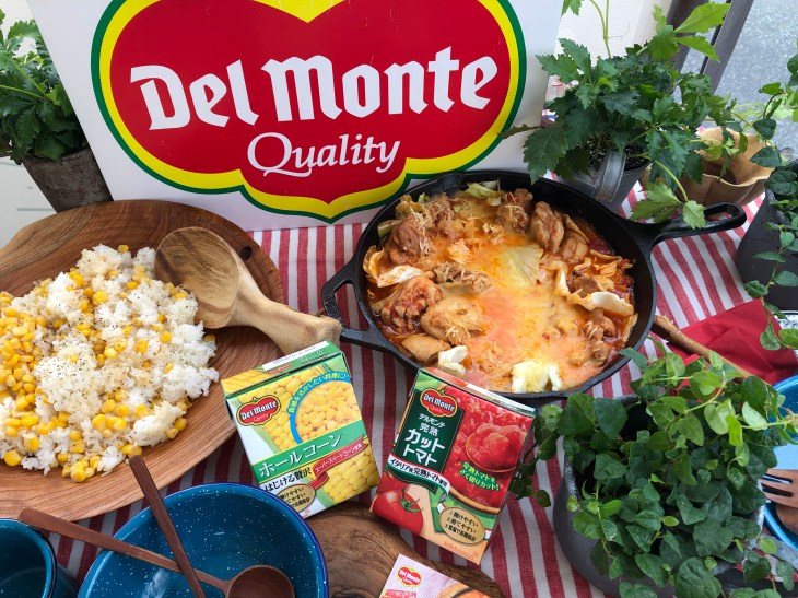 デルモンテ さんのカットトマトとホールコーンを使ったレシピ考案とレシピリーフレットのビジュアルのスタイリングをさせていただき、