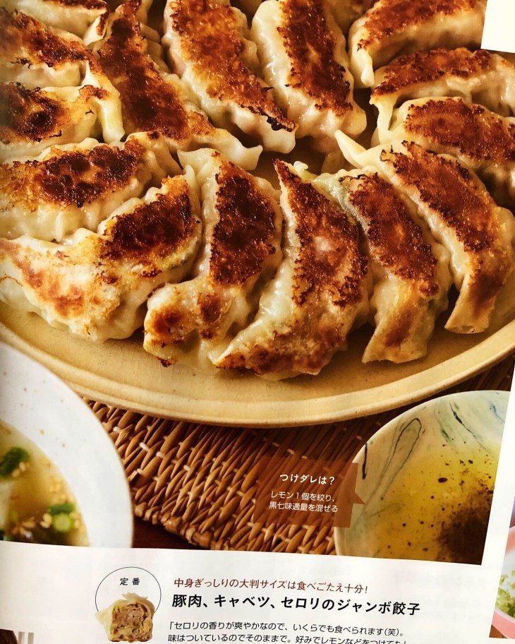 豚(粗みじん切り)、キャベツ、セロリのジャンボ餃子を柑橘と黒七味で食べる!