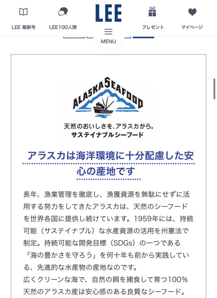 メニューは「紅鮭のピカタ」、「ちくわと根菜の甘辛ごはん」、「真だらとカリカリじゃがいものネギ塩レモン」の3品。子どもはもちろん、大人も喜ぶおいしさ満点のシーフードメニューをLEEwebで公開中(11月18日(月)10時まで)です。