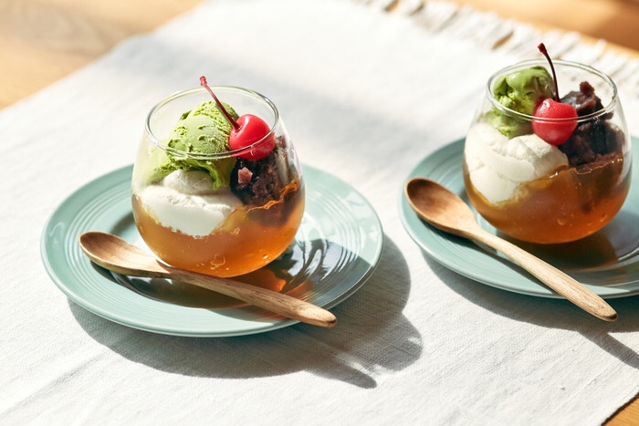 ③これ、大好物!”ほうじ茶ゼリーパフェ”