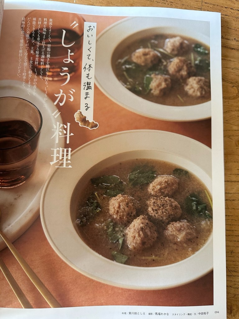 「素敵なあの人11月号」(宝島社)生姜レシピ 2024年12月8日 「素敵なあの人11月号」(宝島社)おいしくて、体も温まる“しょうが”料理私は生姜が大好きなので一年中かかさないのですが、これからの季節にもさらに最適な生姜レシピを8品ご紹介しています。宝島社さんでは色々なお仕事をさせていただいていますが、初「素敵なあの人」の誌面です。これからの自分がお手本にしたい素敵な方たちの装いなど、読み応えたっぷりです。ぜひご覧いただけると嬉しいです。編集長の神下さんはじめ皆様ありがとうございました。私の書籍「毎日のごはんと心地よい暮らし 」のメンバーでのお仕事嬉しかったです。 共有: Facebook で共有するにはクリックしてください (新しいウィンドウで開きます) Facebook クリックして X で共有 (新しいウィンドウで開きます) X いいね 読み込み中… 投稿者: toshiekikawada totto (黄川田としえ) 料理家・フードスタイリスト tottorante主宰 食育インストラクター 東京生まれ 大学卒業後、プロサッカー選手と結婚。 毎日の食事を作る中で食の大切さを実感する。 メイクアップアーティストを経て、食の世界へ。 テレビ局の情報番組のアシスタントディレクター、 料理番組のアシスタントなどを経験後、料理コーナーのディレクターに就任。 その後、料理家に転身。 メディアでのフードスタイリング、レシピ開発、出演などをはじめ、 イベント企画・運営、料理講師など多岐にわたり活動中。 またイベント等のフードケータリングなども行う。 また家族のための1日限定レストラン「こどもレストラン」など、 子どもたちの心と体の成長をサポートし、 家族で楽しめるワークショップを各地で開催中。 ◎著書 食×職 (カナリア書房) tottoちゃんのかんたんdeco弁(祥伝社) 毎日のごはんと心地よい暮らし(宝島社) toshiekikawada の投稿をすべて表示